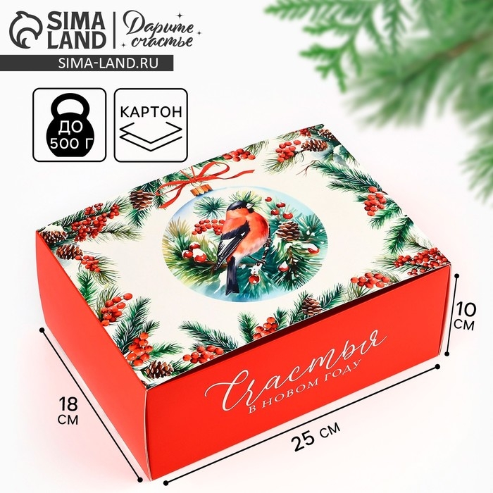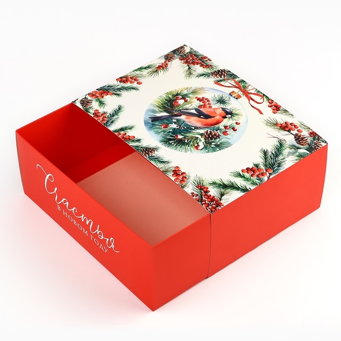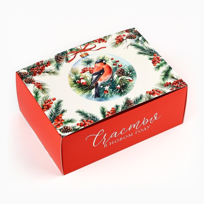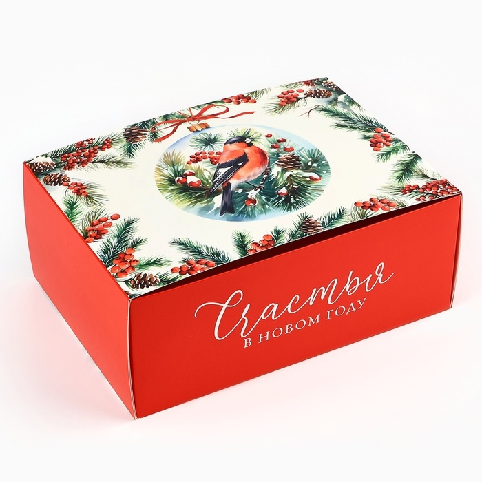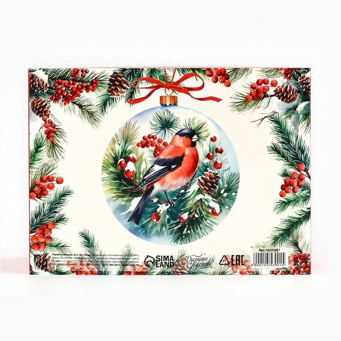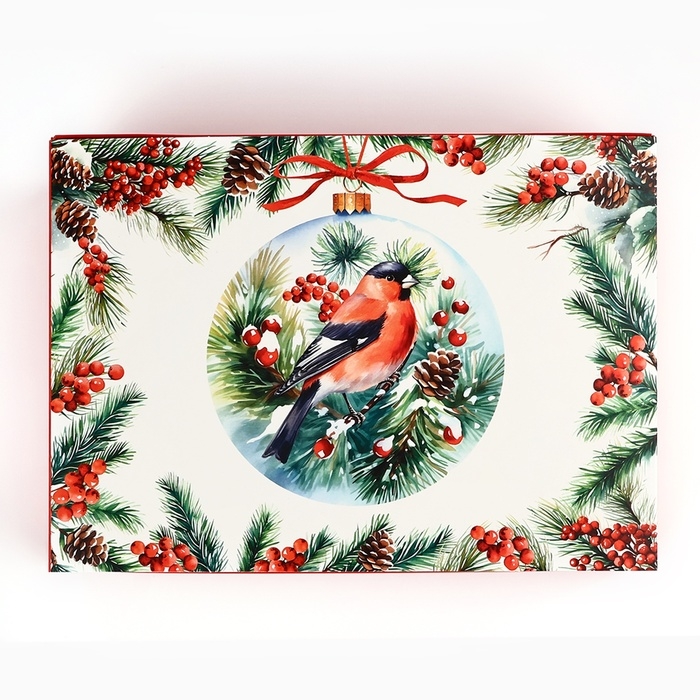 Коробка подарочная новогодняя складная «Снегири», 25 х 18 х 10 см, Новый год