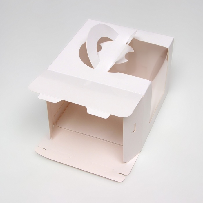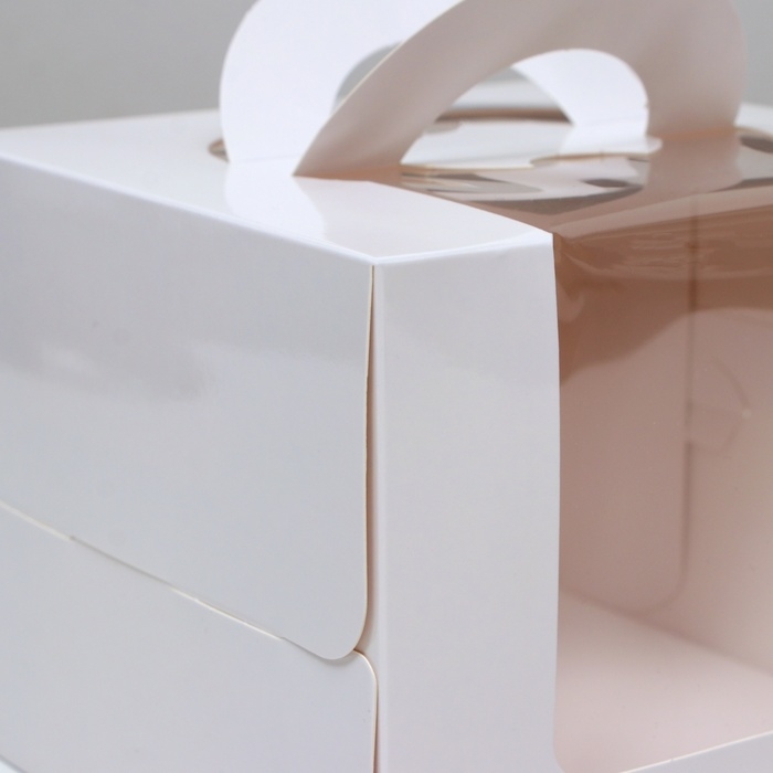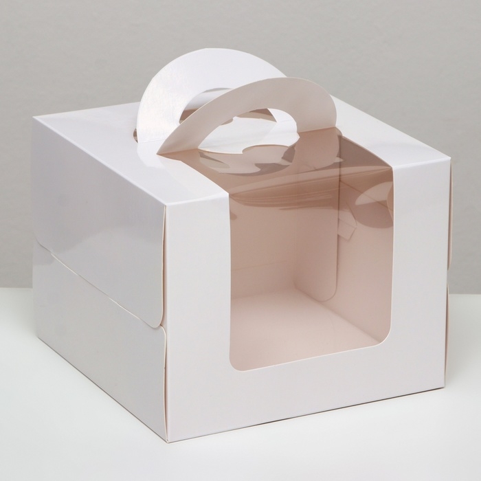 Коробка под торт, белая, с окном, 18 х 18 х 22 см