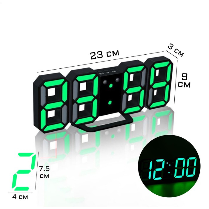 Часы электронные настольные "Цифры", с подвесом, зеленая индикация, 9 х 3 х 23 см, от USB