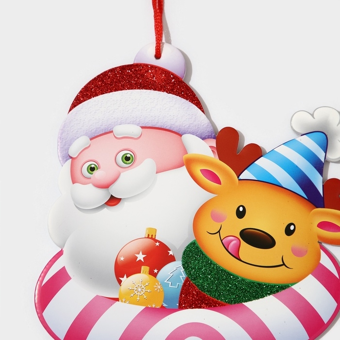 Декоративное украшение (подвеска) "Дед мороз и олень" 35х24 см
