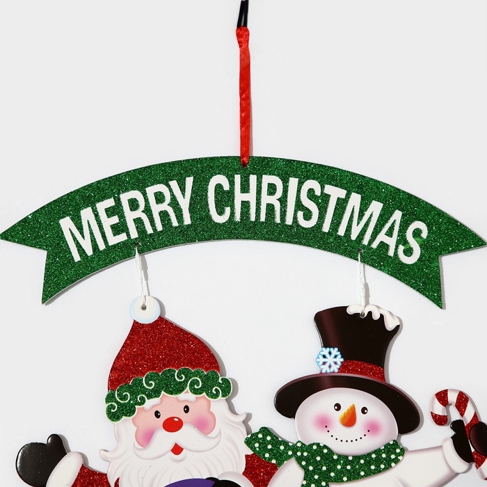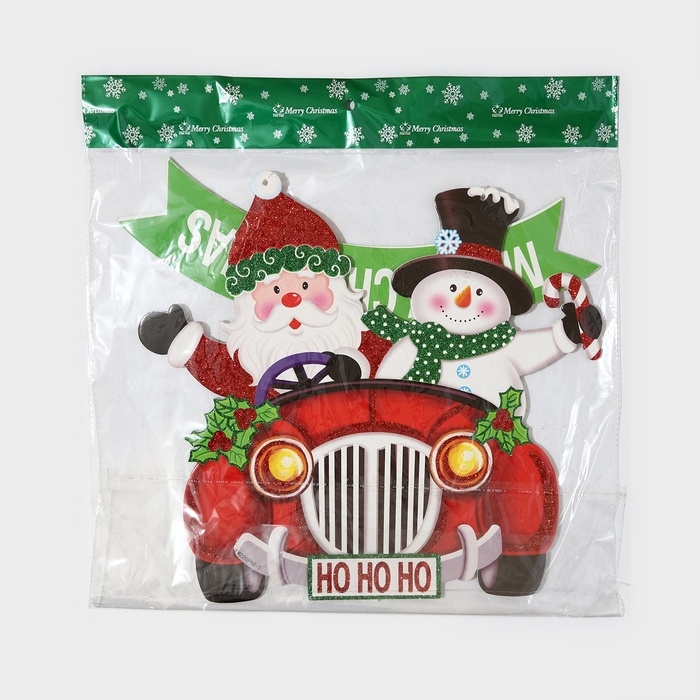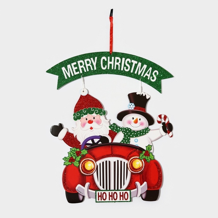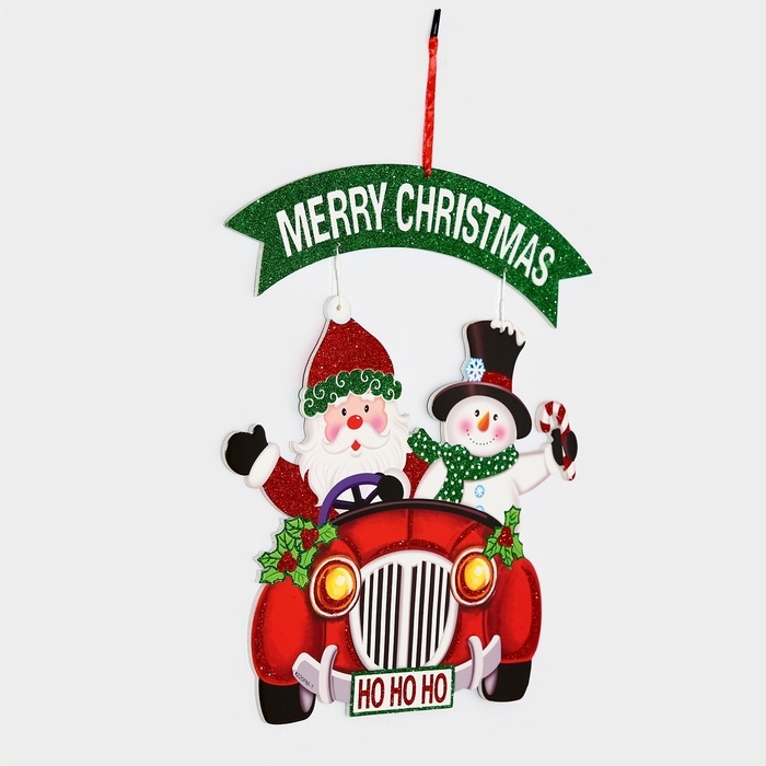 Декоративное украшение (подвеска) "Дед мороз и снеговик на автомобиле" 40х34 см