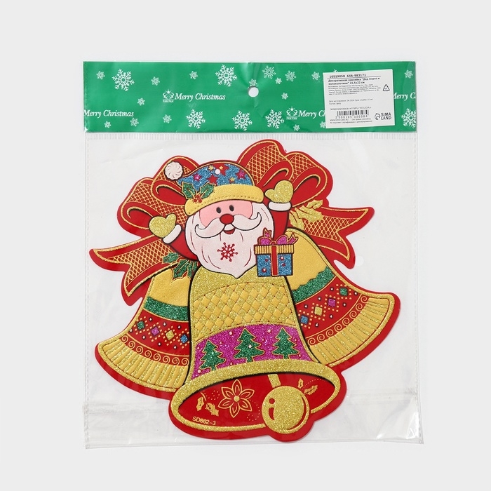 Декоративная наклейка "Дед мороз и колокольчики" 21,5х22 см