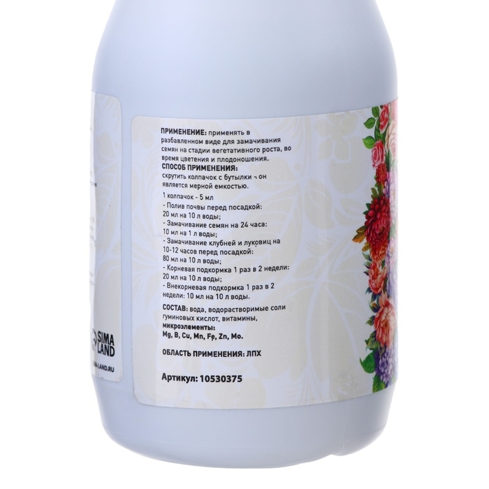 - Цветущие кустарники и однолетние цветы: (пионы, розы, гортензия, петуния).СПОСОБ ПРИМЕНЕНИЯ: скрутить колпачок с бутылки он является мерной емкостью. Перед применением взболтать.
