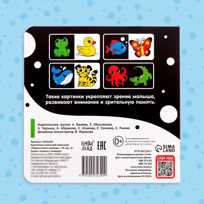 Книга «Чёрно-белые картинки для новорожденных» — отличный инструмент для развития малышей с рождения, который познакомит их с окружающим миром.