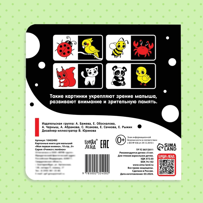 Картонная книга для новорожденных «Контрастные картинки», 10 стр., 0+