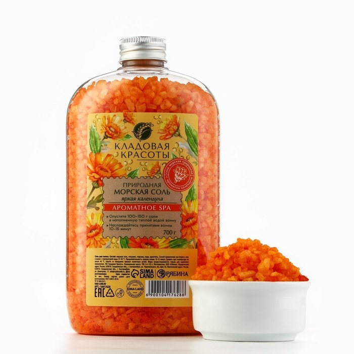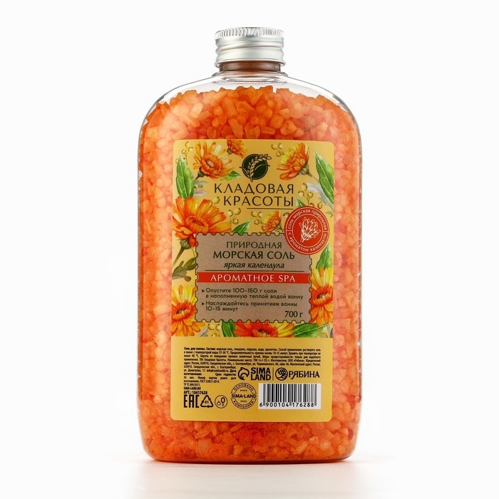 Природная морская соль для ванны, 700 г, аромат календулы, КЛАДОВАЯ КРАСОТЫ