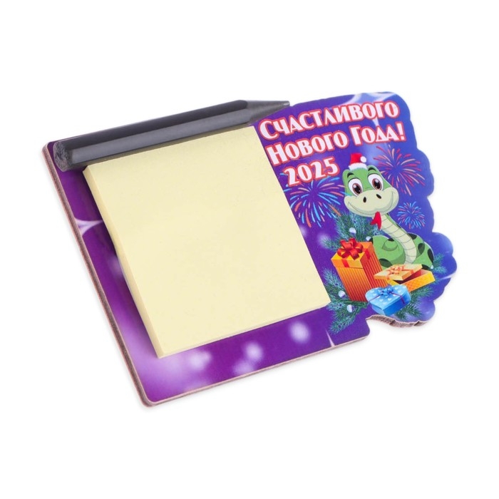 Магнит новогодний, змея, с блоком для записи "Счастливого Нового Года!" символ года