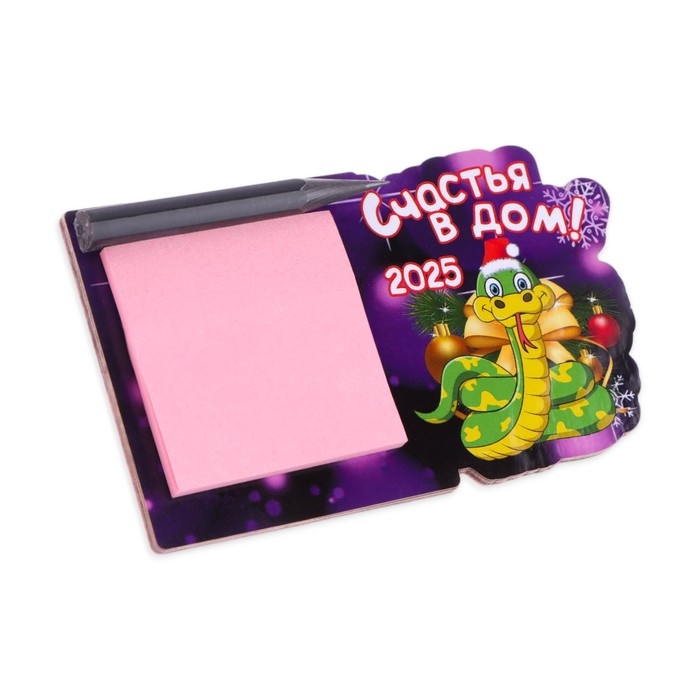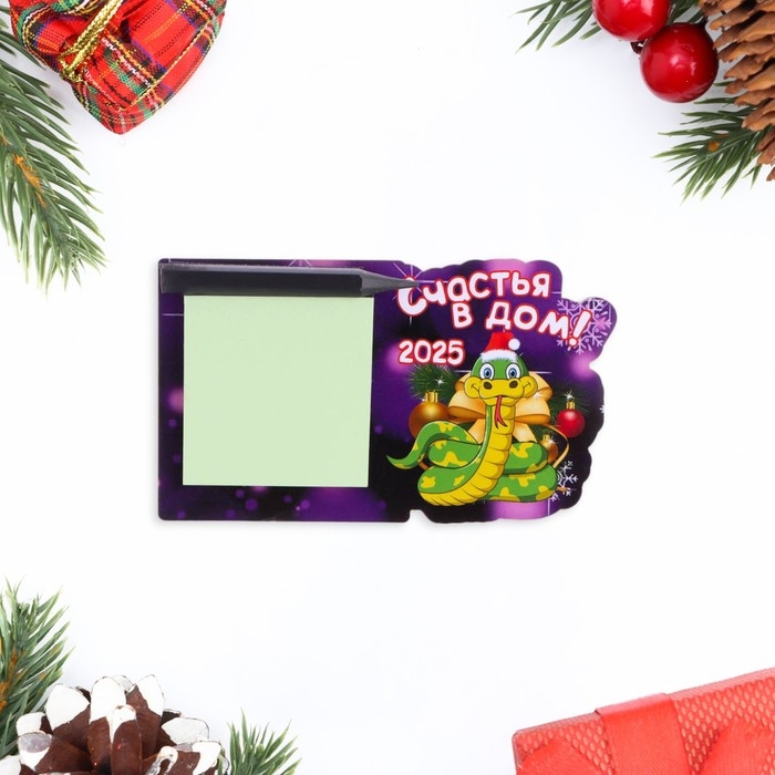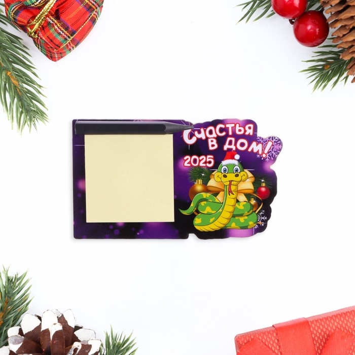 Магнит новогодний, змея, с блоком для записи "Счастья в дом!" символ года, бант