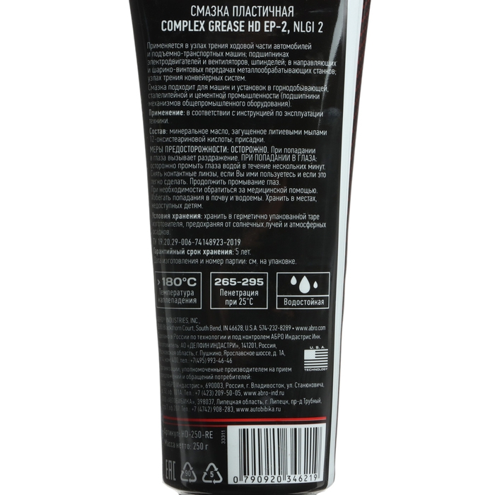 Смазка пластичная литиевая ABRO HEAVY DUTY, 250 мл