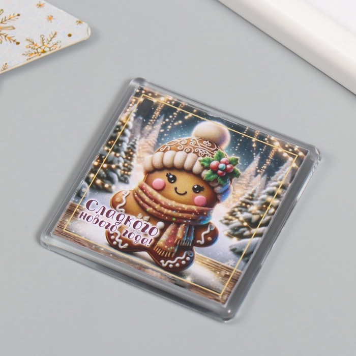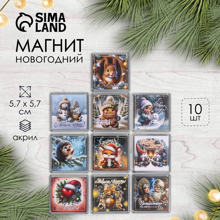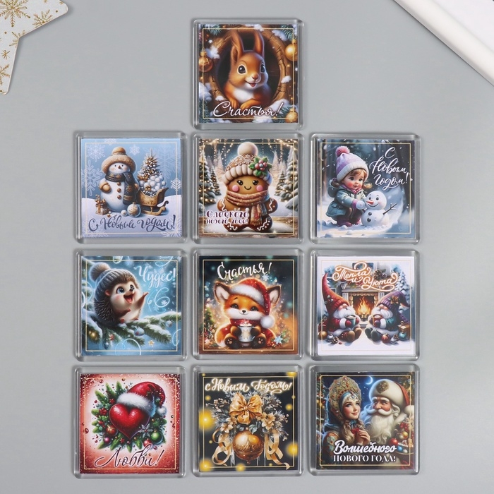 Новогодний магнит акрил "Новогодний микс" 5,7х5,7 см МИКС 10 видов