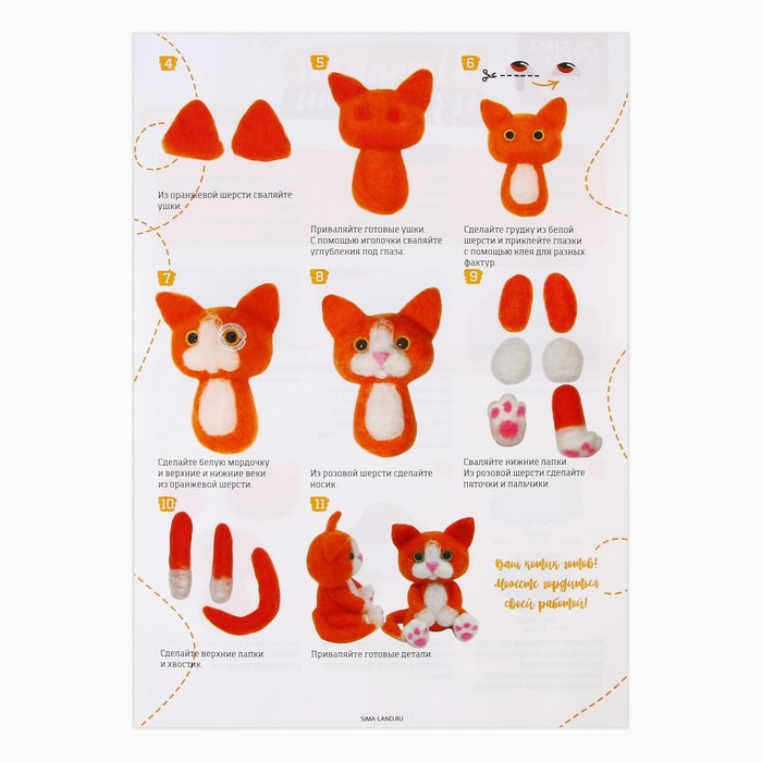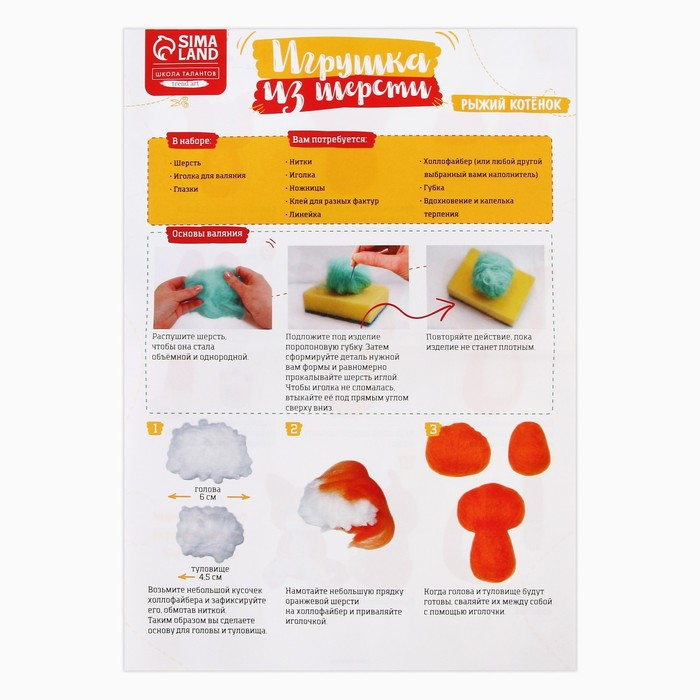 Валяние из шерсти. Игрушка «Рыжий котёнок», набор для творчества