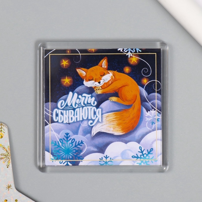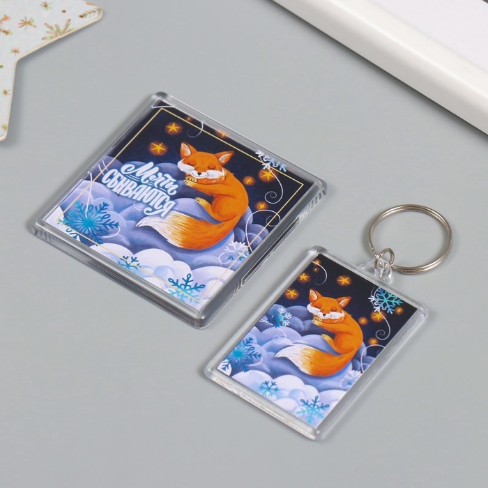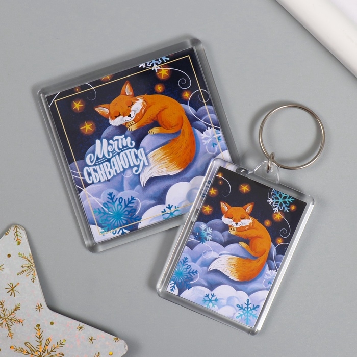 Новогодний набор "Лиса в облаках" (брелок 3,5х5 см, магнит 5,7х5,7 см)