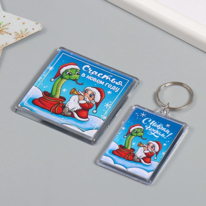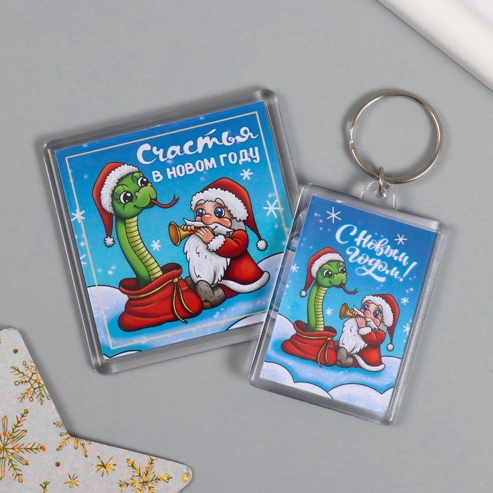 Новогодний набор "Змея. Дудочка" (брелок 3,5х5 см, Новогодний магнит 5,7х5,7 см)