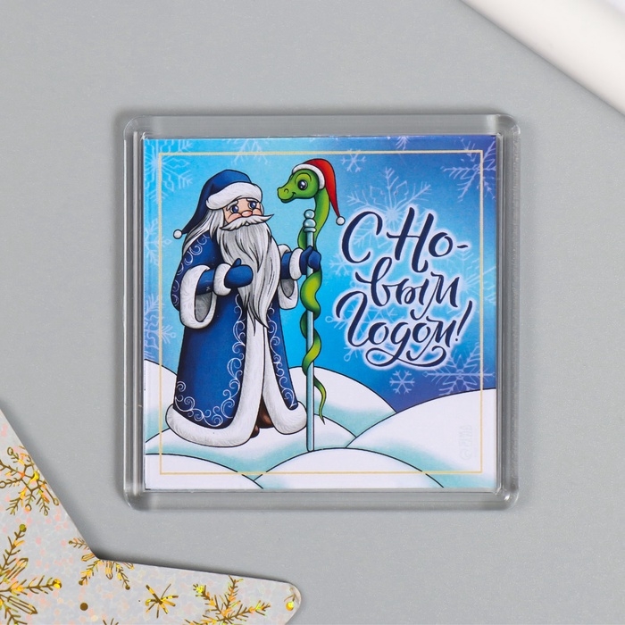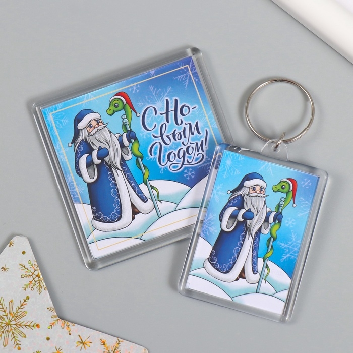Новогодний набор "Дедушка и змейка" (брелок 3,5х5 см, Новогодний магнит 5,7х5,7 см)