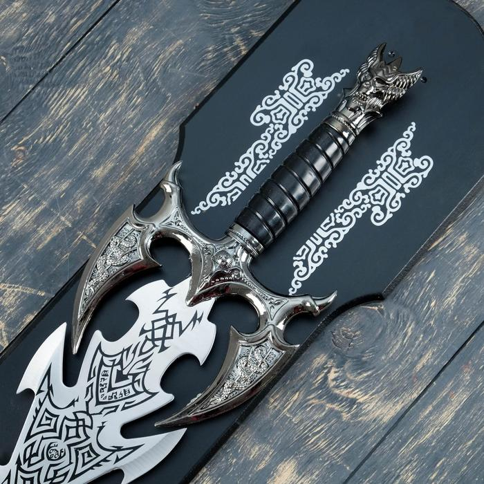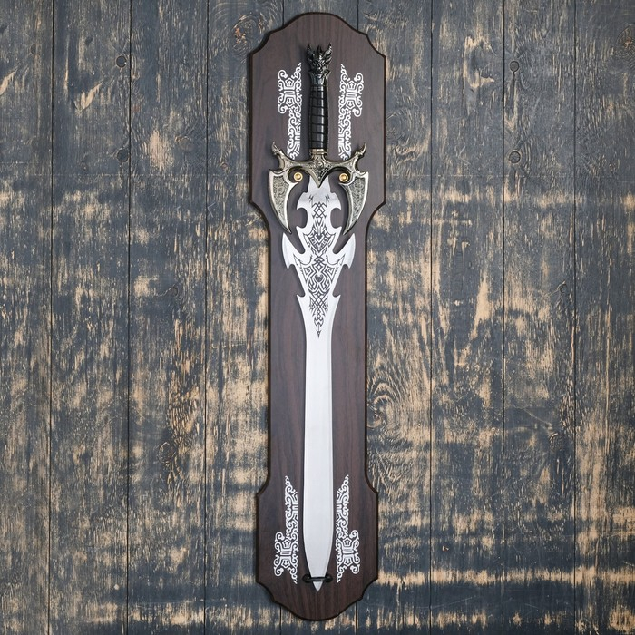Сувенирный меч на планшете, резное лезвие, рукоять с головой дракона