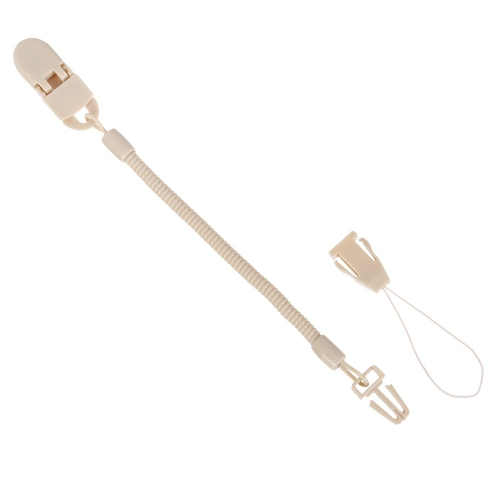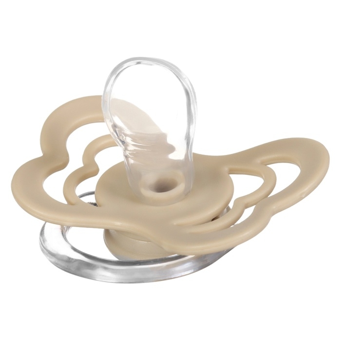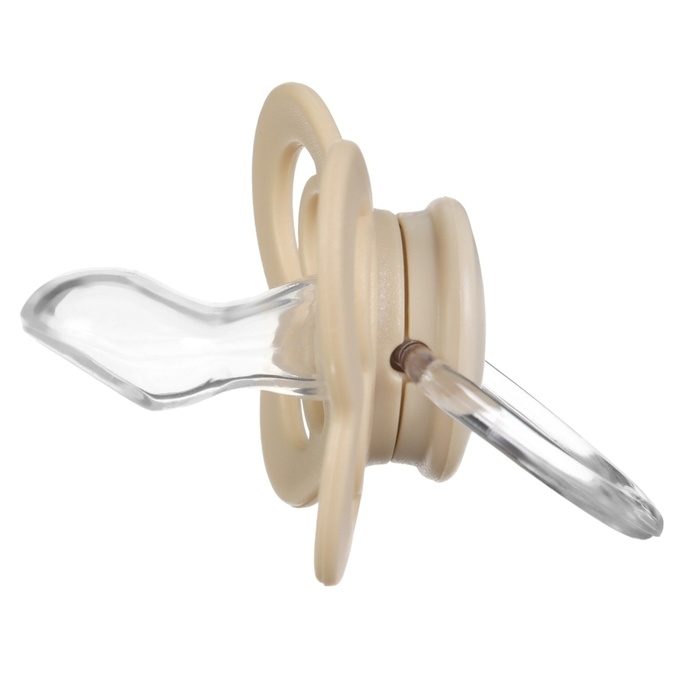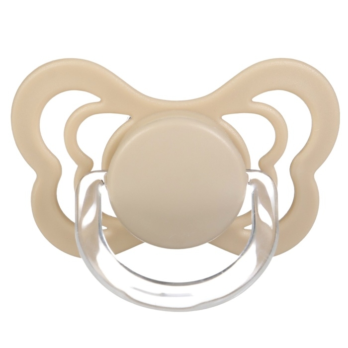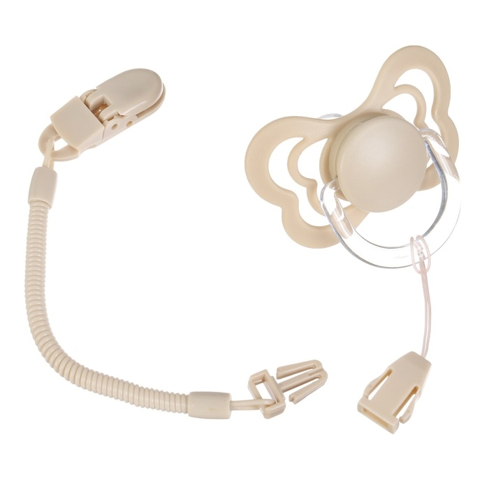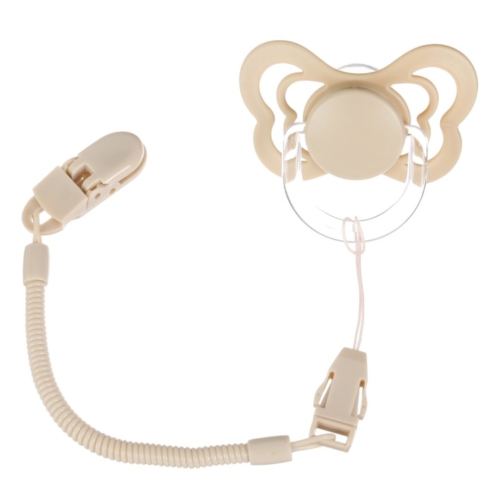 Соска - пустышка ортодонтическая, силикон, +6 мес., с держателем, цвет бежевый