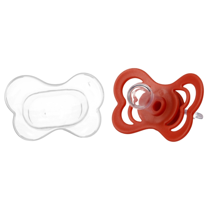 Соска пустышки сделала из безопасного силикона и имеет специальные вентиляционные отверстия, которые улучшают циркуляцию воздуха, не раздражают кожу малыша и не оставляют следов и опрелостей. Создана для удовлетворения естественного сосательного рефлекса малышей.
