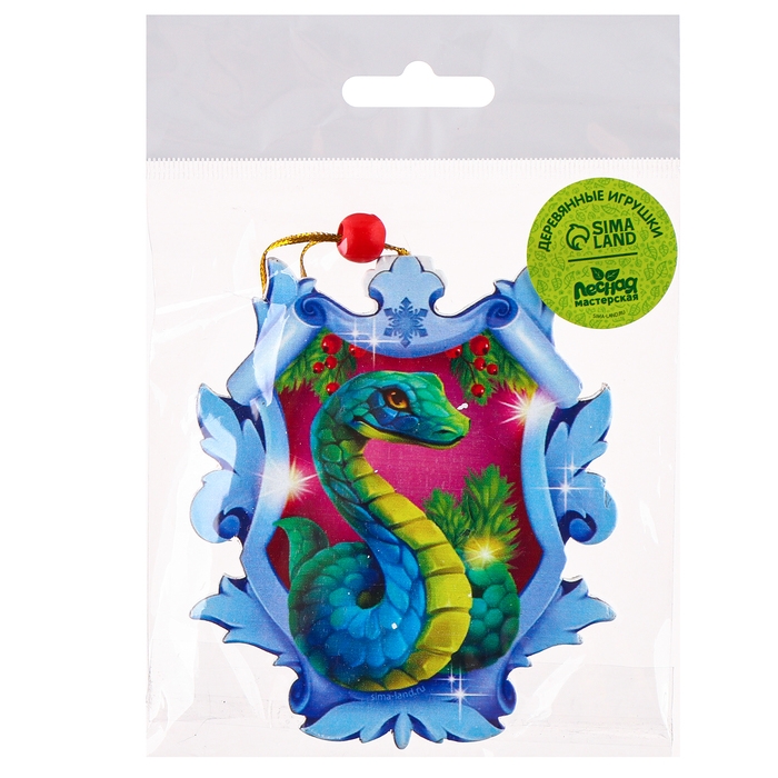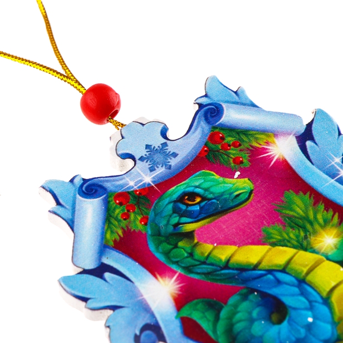 Ёлочная игрушка - подвеска деревянная «Новый год! Змея в снежинке», символ года 2025