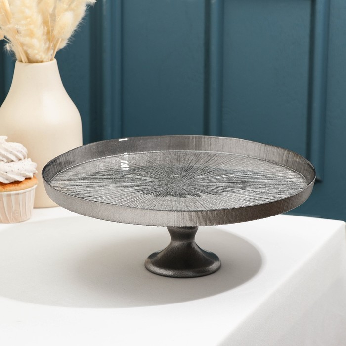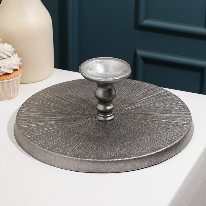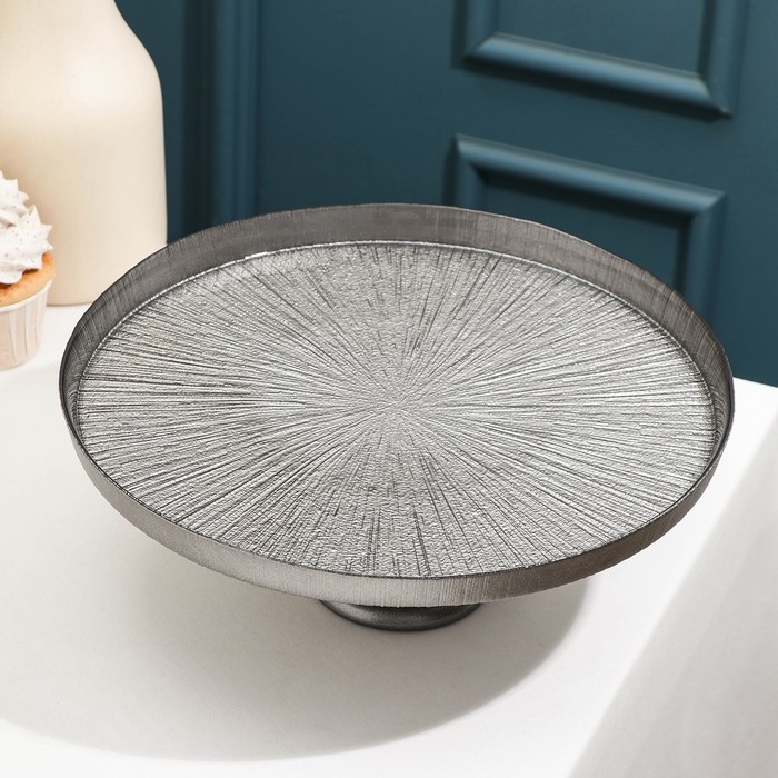Блюдо сервировочное для торта «Кувшинка», d=28 см, на ножке, цвет серебряный