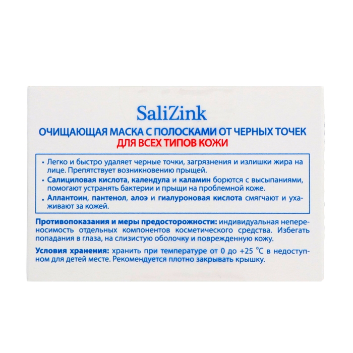 Маска очищающая с полосками от черных точек SaliZink для всех типов кожи, 50 мл