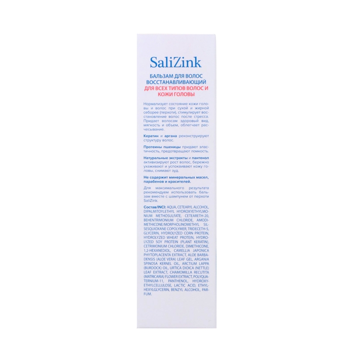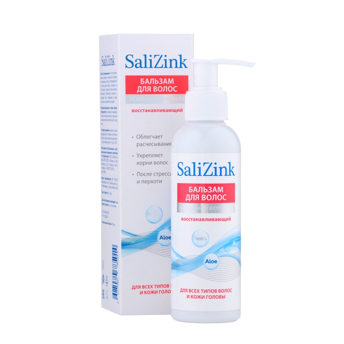 Бальзам для волос восстанавливающий Salizink — это эффективное средство для ухода за волосами всех типов, особенно повреждёнными и ослабленными. Он нормализует состояние кожи головы и волос при сухой и жирной себорее (перхоти), стимулирует восстановление волос после стресса и придаёт им здоровый вид, мягкость и объём.