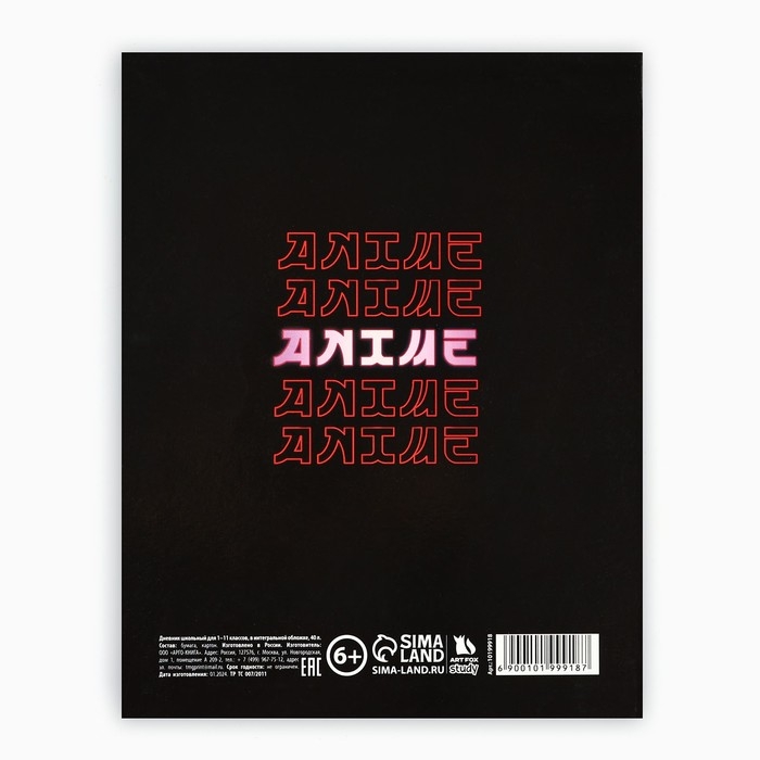 Дневник школьный для 1-11 класса, в интегральной обложке, 40 л. «1 сентября:Аниме. Котик»