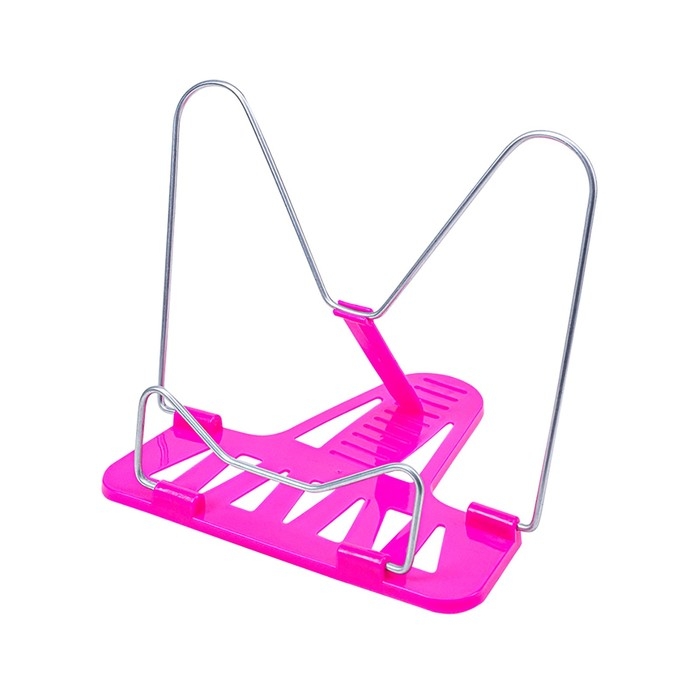 Компактная, легкая и прочная подставка позволяет расположить книгу или журнал на рабочем месте под удобным углом наклона. Подходит для книг разного формата. Благодаря наличию фиксатора подставка не складывается под тяжестью книги.