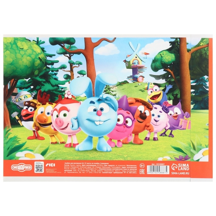 Альбом для рисования, А4, 32 листа, на склейке, Смешарики