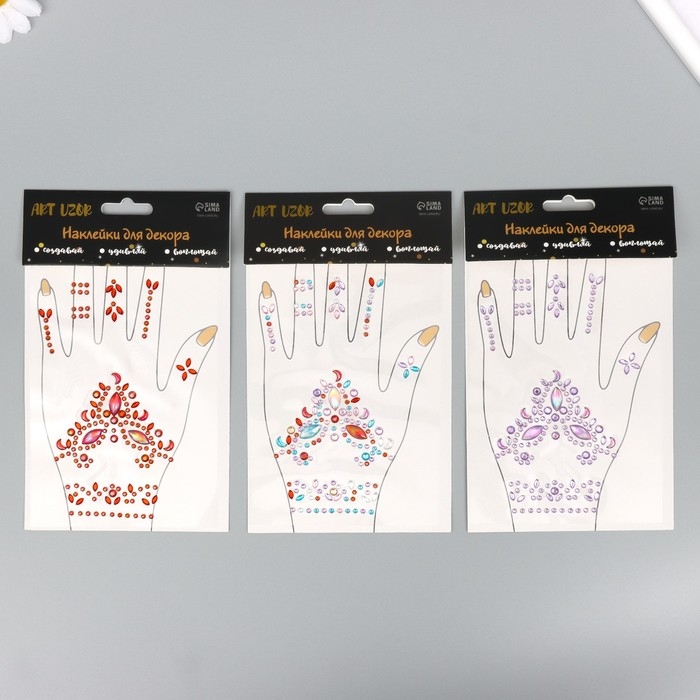 Наклейка пластик стразы "Узоры" МИКС 12х20,3 см