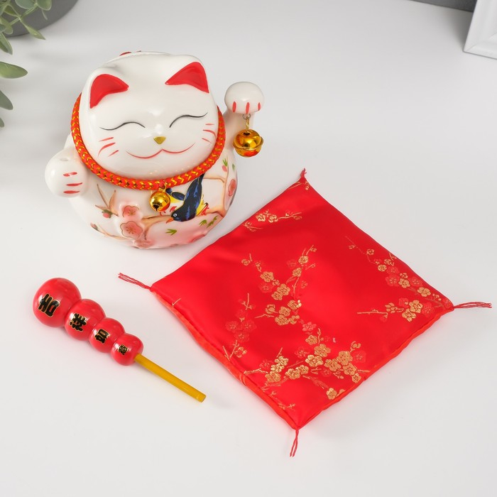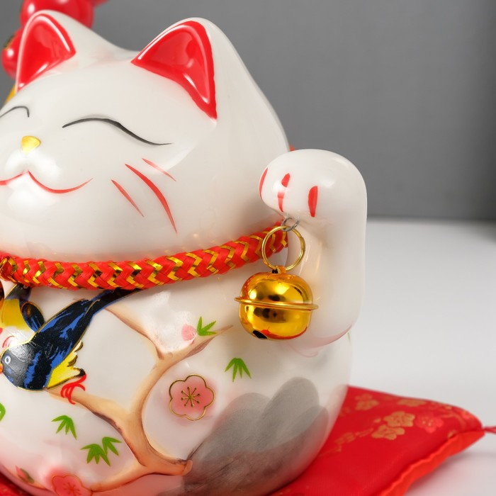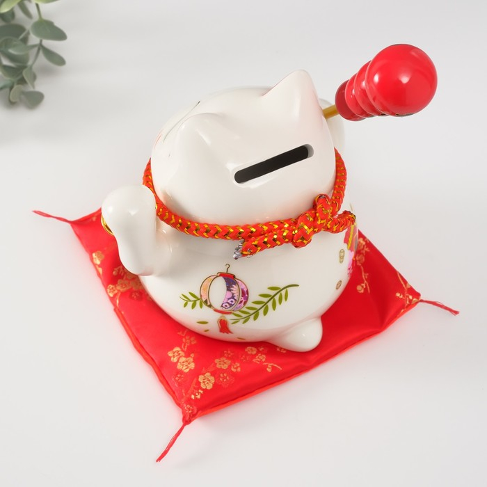 Копилка керамика "Кот манэки-нэко на коврике с колокольчиками" 12,5х13х10,5 см