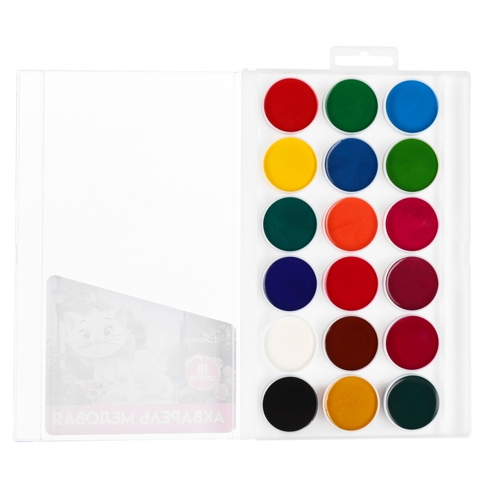 Акварель 18цв пластик, «Кошечка мари», европодвес