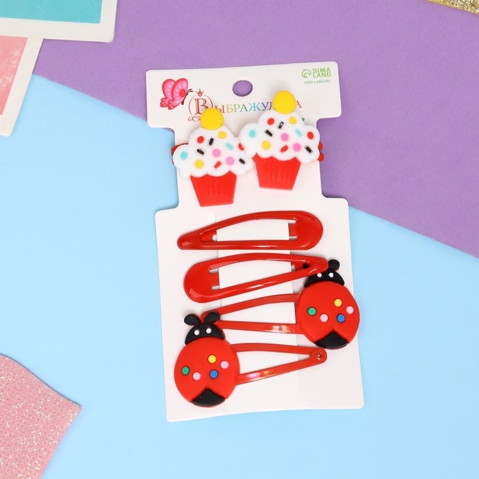 Набор для волос "Ширли" (2 резинки 5 см, 4 невидимки 5,5 см) пирожное, красный