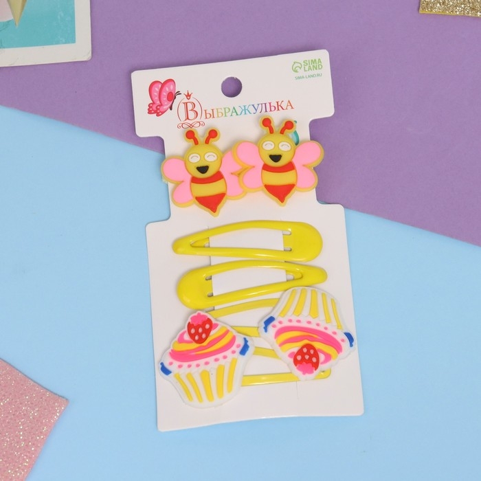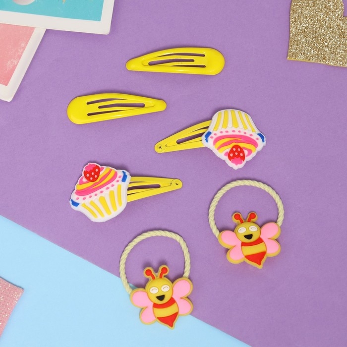 Набор для волос "Ширли" (2 резинки 5 см, 4 невидимки 5,5 см) пчёлка, жёлтый