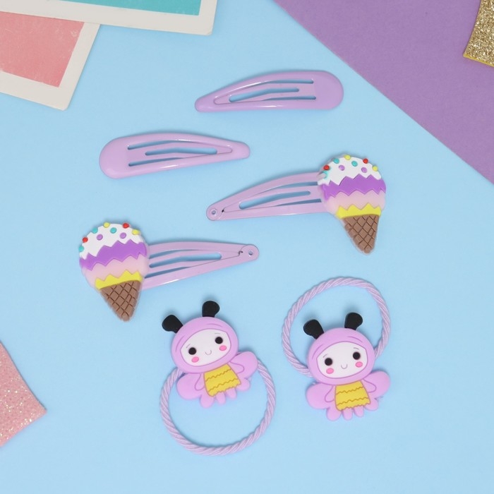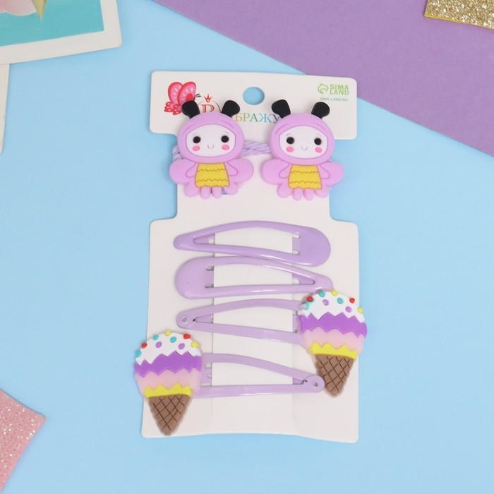 Набор для волос "Ширли" (2 резинки 5 см, 4 невидимки 5,5 см) пчёлка, сиреневый