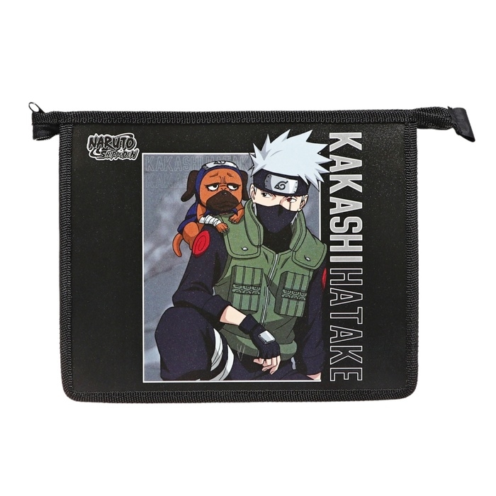 Папка для тетрадей А5, Naruto, 190х230, молния сверху, пластиковая, универсальная, чёрная
