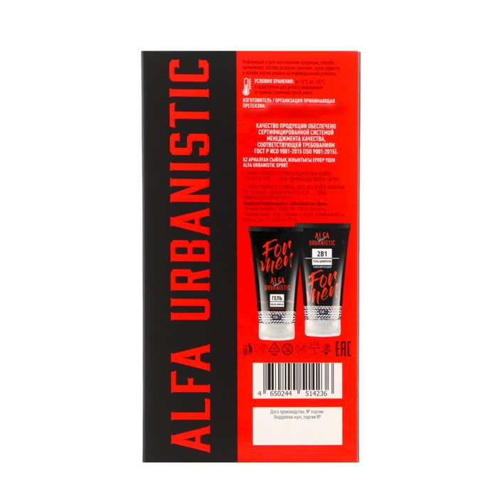 Подарочный набор косметики мужской"Alfa Urbanistic Sport": гель после бритья, 150 мл + гель-шампунь 2 в 1, 150 мл