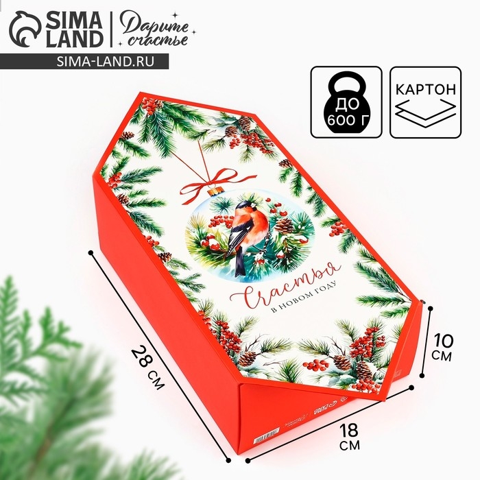 Подарочная коробка - конфета новогодняя складная «Счастья в Новом году», 18 х 28 х 10 см, Новый год