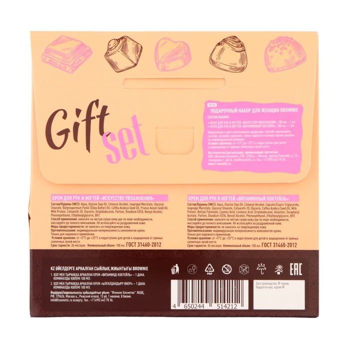 Подарочный набор косметики женский: крем для рук и ногтей "Витаминный коктейль", 100 мл + крем для рук и ногтей "Искусство увлажнения", 100 мл