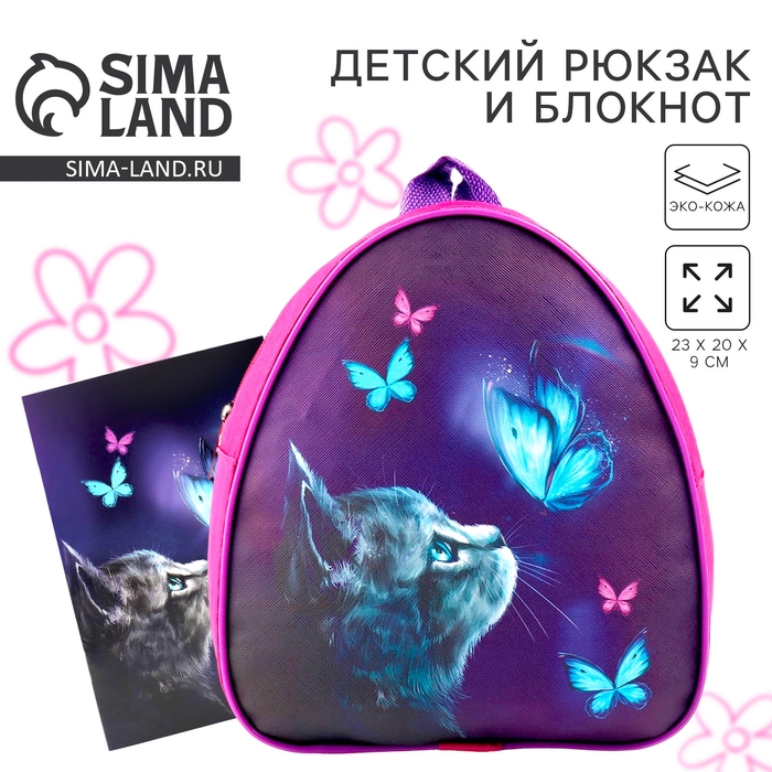 Детский рюкзак с блокнотом «Котик», 23х20,5 см