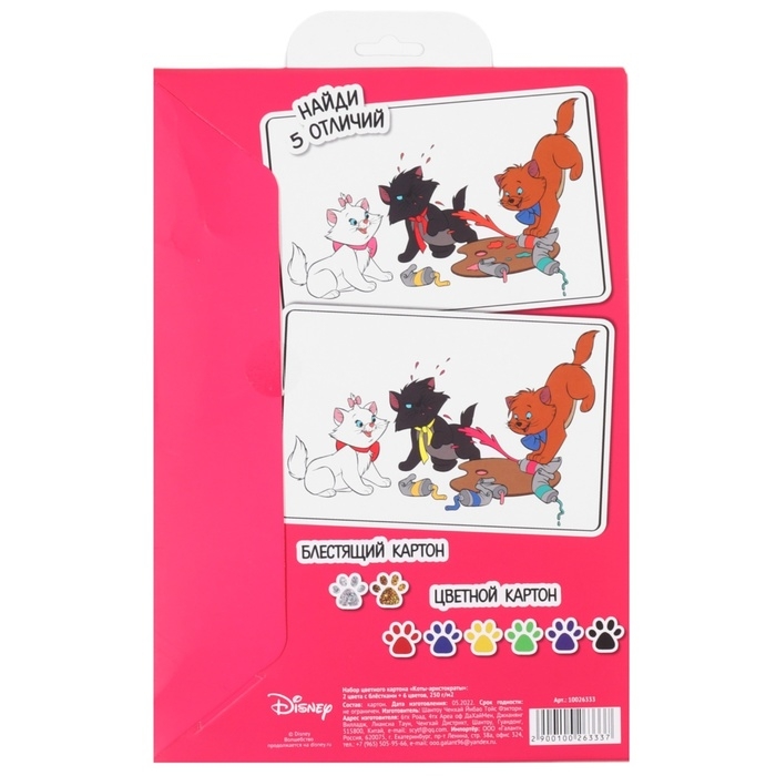 Картон цветной с блёстками, А4, 8 листов, 8 цветов, немелованный, двусторонний, в папке, 250 г/м², Коты Аристократы