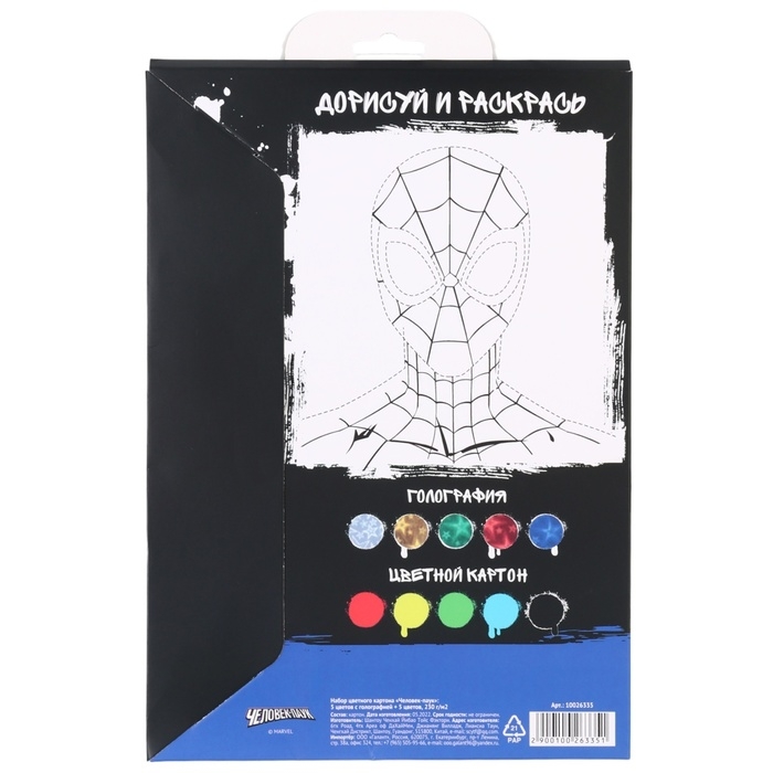 Картон цветной с голографией, А4, 10 листов, 10 цветов, немелованный, двусторонний, в папке, 250 г/м², Человек-паук
