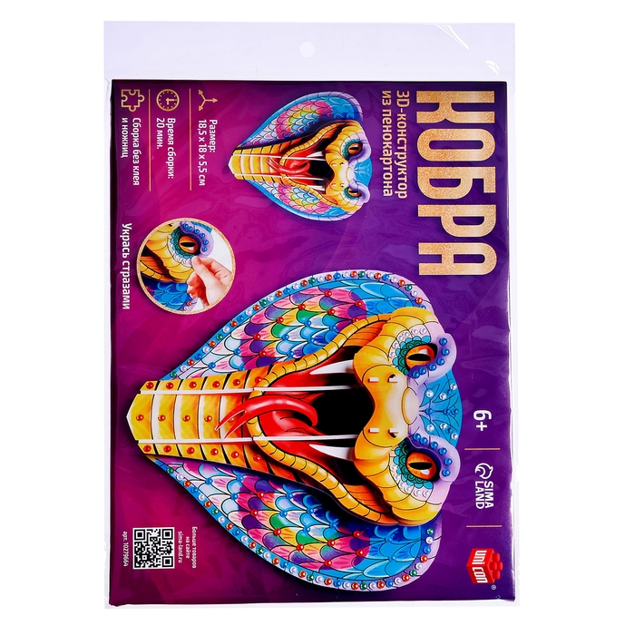 3D конструктор «Кобра» из пенокартона — это увлекательный набор для создания объемной модели, украшенной стразами. Конструктор позволяет собрать кобру, которая станет ярким декором для детской комнаты или оригинальным подарком!