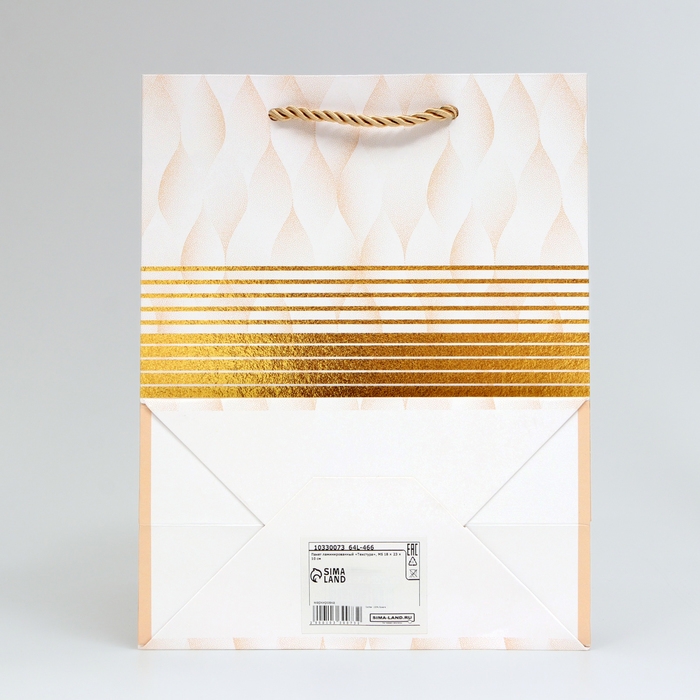 - Удобство использования: пакет оснащён прочным картонным дном и ручкой шнур, что облегчает переноску подарка.