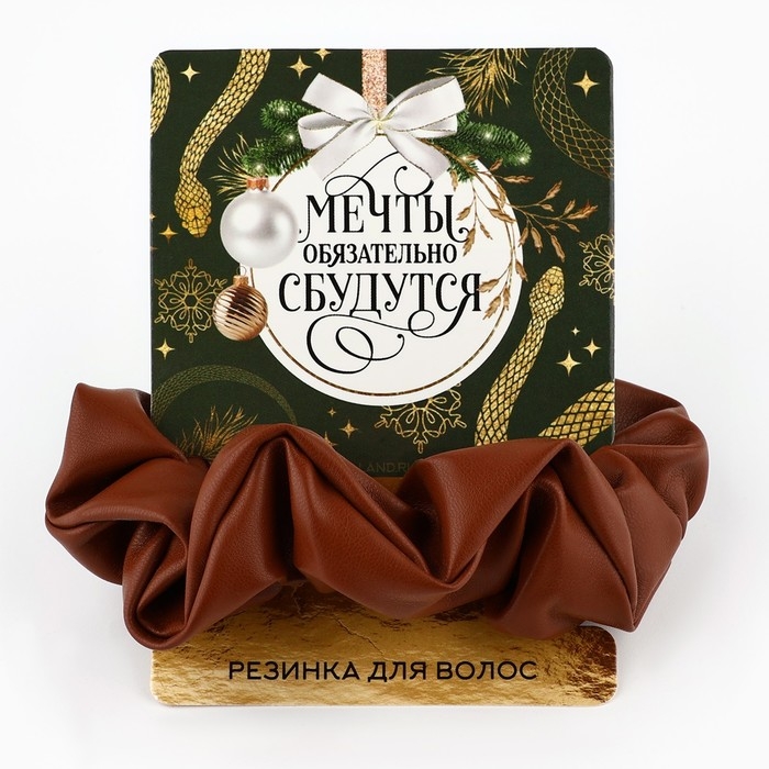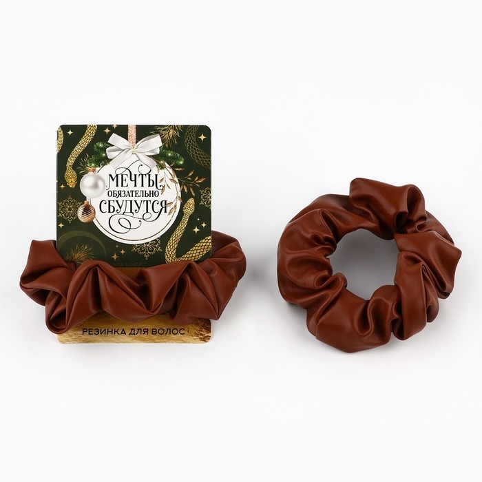 Резинка для волос новогодняя «Мечты сбудутся» на Новый год, коричневая, диам, 10 см