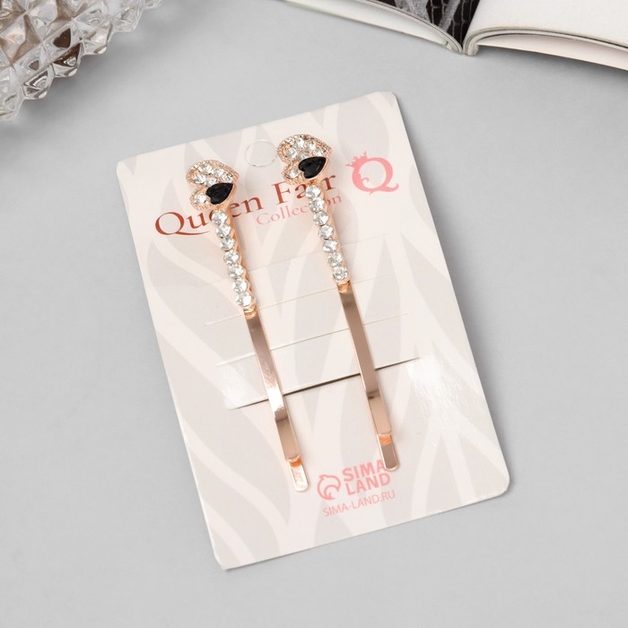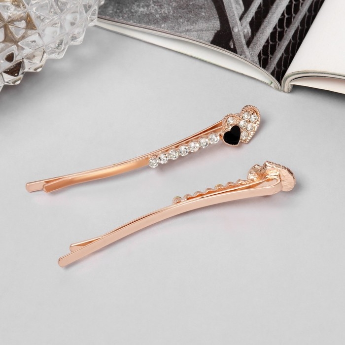 Невидимка для волос "Хайди" (набор 2 шт) сердце, 6 см, розовое золото