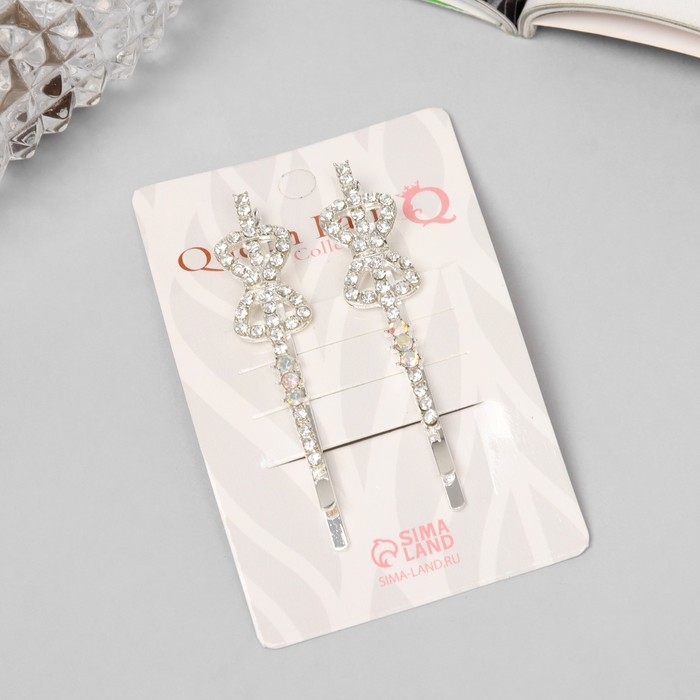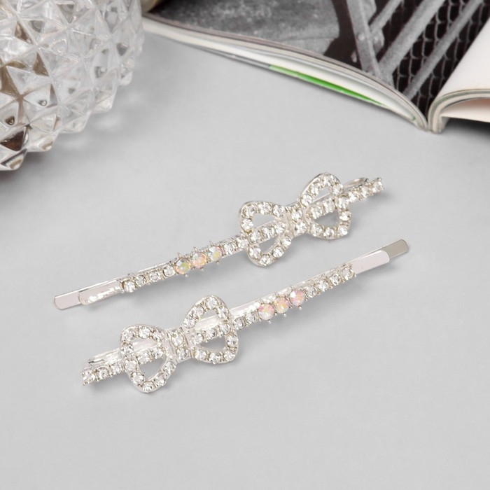 Невидимка для волос "Эбба" (набор 2 шт) бант, 6 см, серебро