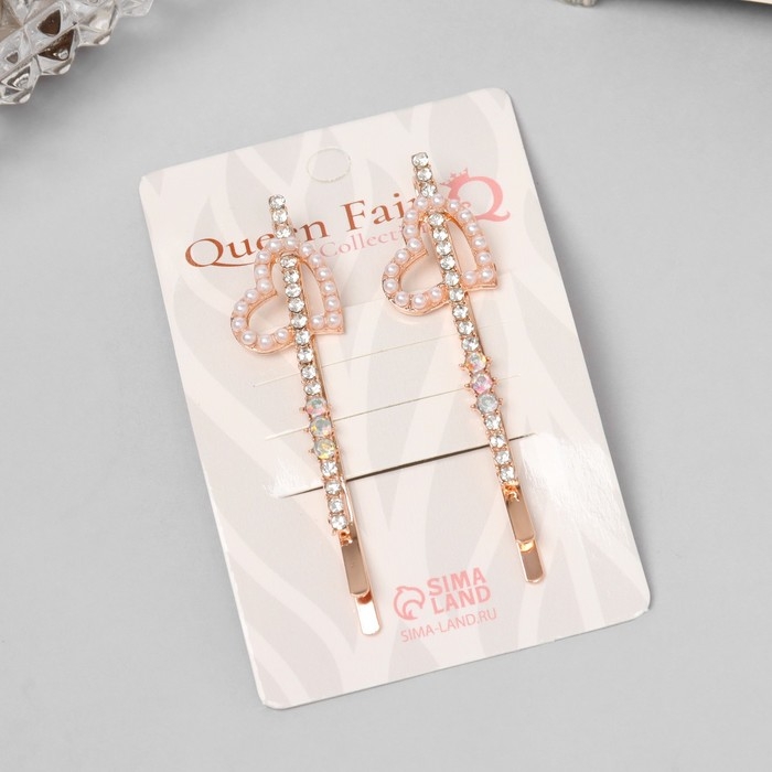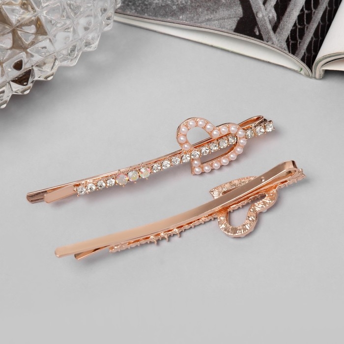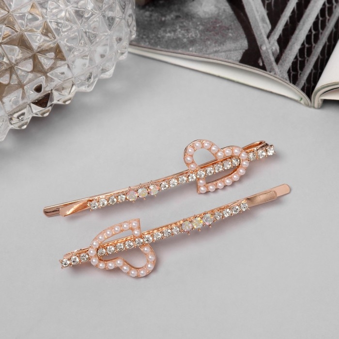 Невидимка для волос "Глория" (набор 2 шт) сердце, 6 см, розовое золото
