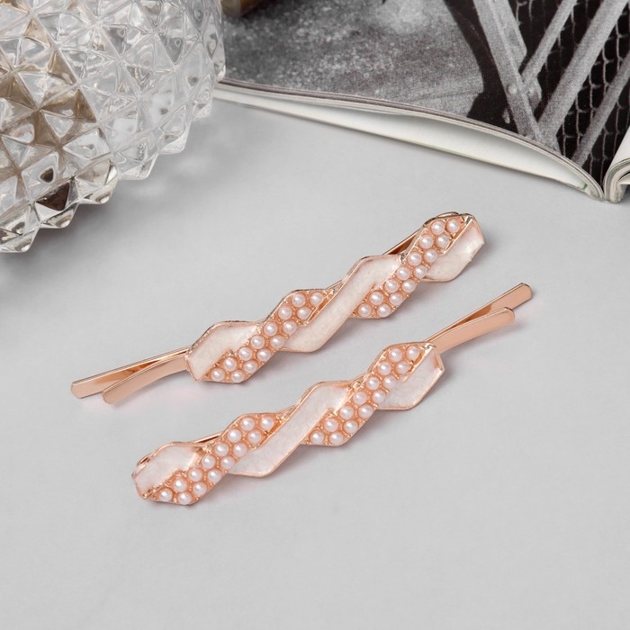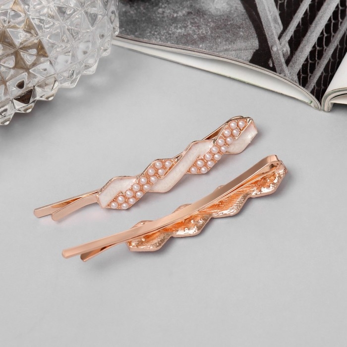 Невидимка для волос "Кэли" (набор 2 шт) грация, 6 см, розовое золото