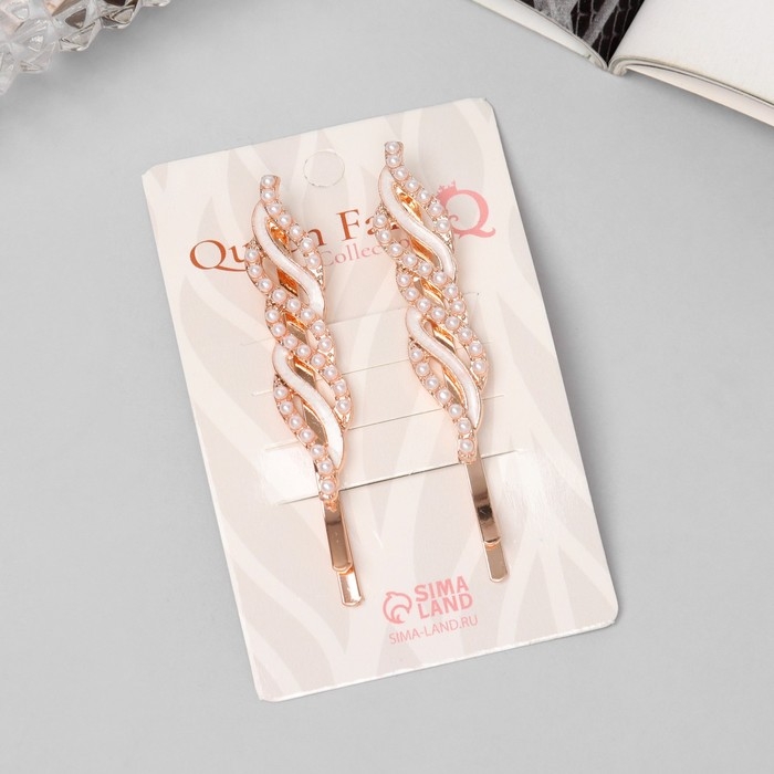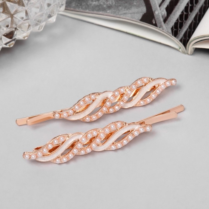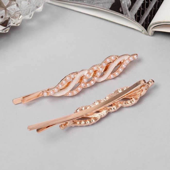 Невидимка для волос "Кэли" (набор 2 шт) нежность, 6 см, розовое золото
