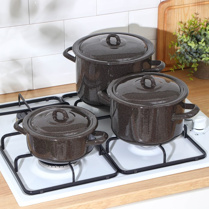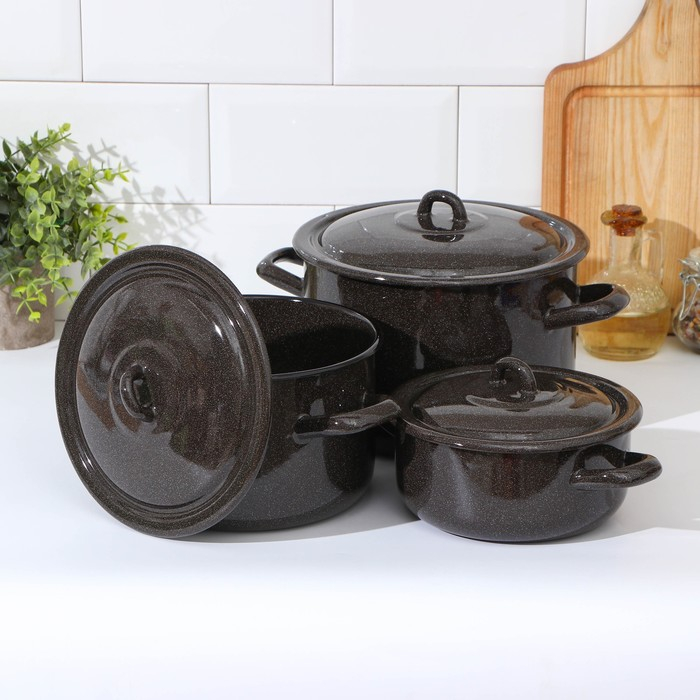 Набор эмалированных кастрюль «Гранит», 3 предмета: 1,5 л, 3 л, 4,5 л, цвет коричневый